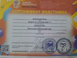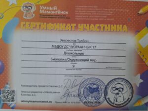 | 6 | Чемчоев Алгыс | 2021г | Международный конкурс «Умный мамонтенок» | Сертификат |