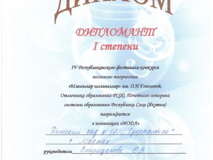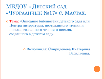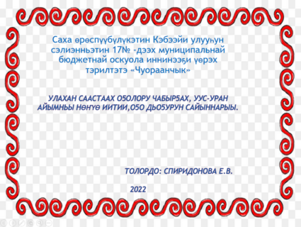 Воспитателя МБДОУ Д/C №17 «Чуораанчык» с. Мастах, Кобяйский улус, РС (Якутия)