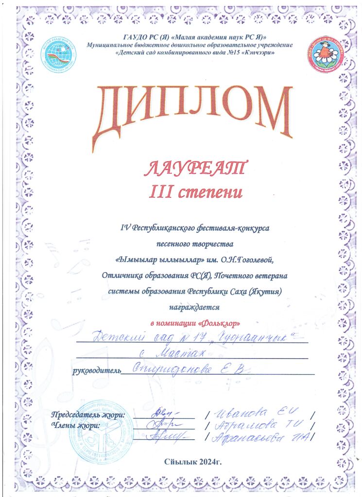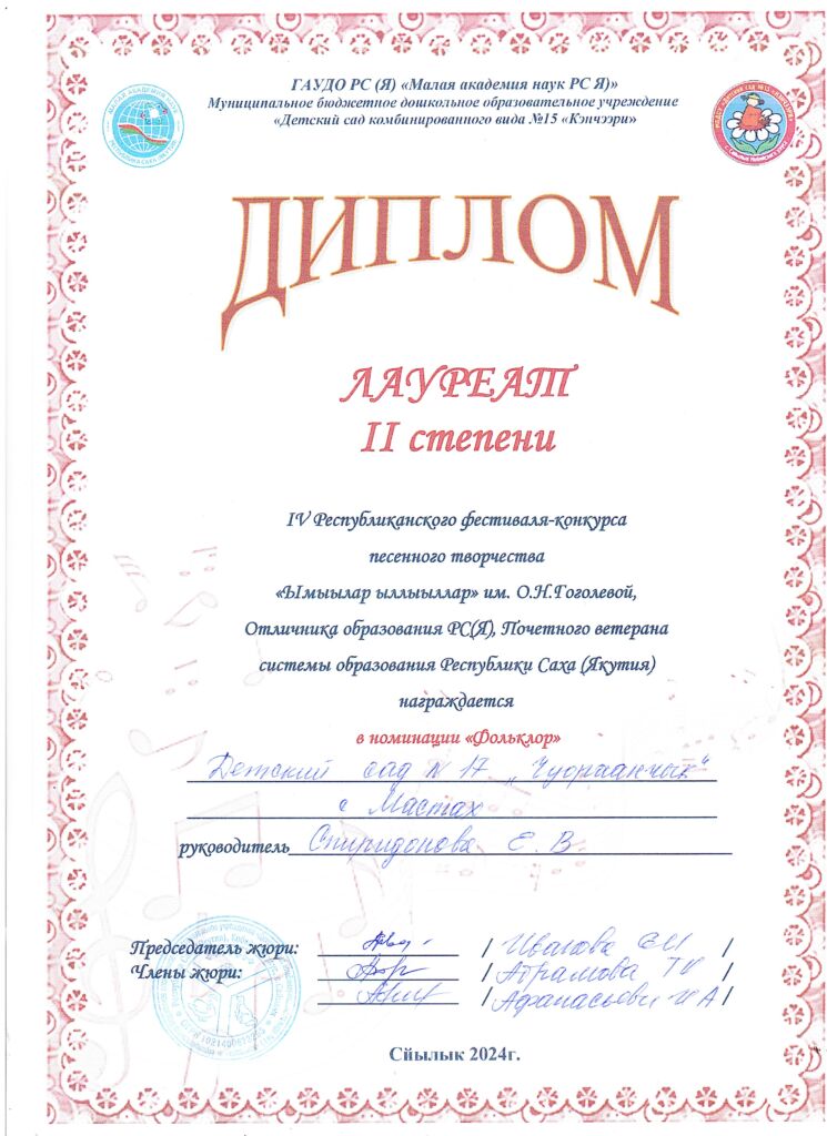 Достижения фольклорного кружка «Мичээр»
