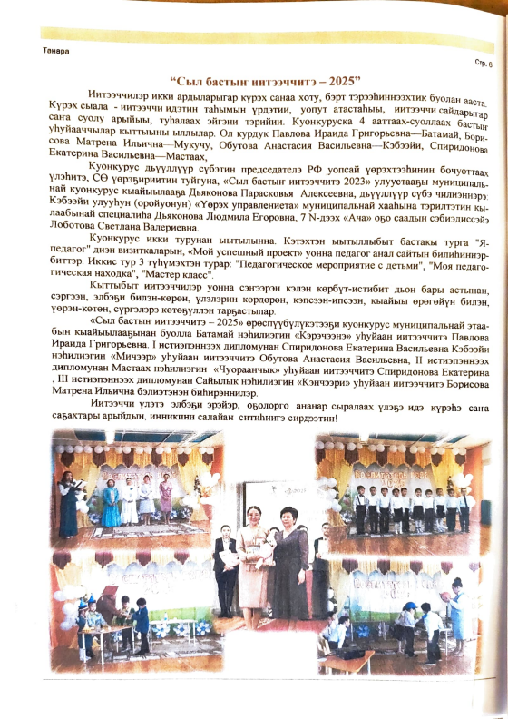 Воспитателя МБДОУ Д/C №17 «Чуораанчык» с. Мастах, Кобяйский улус, РС (Якутия)